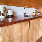 Willa De Schutkooi obejmuje również pełnowymiarową kuchnię wyposażoną w czajnik elektryczny, lodówkę i szklane naczynia.